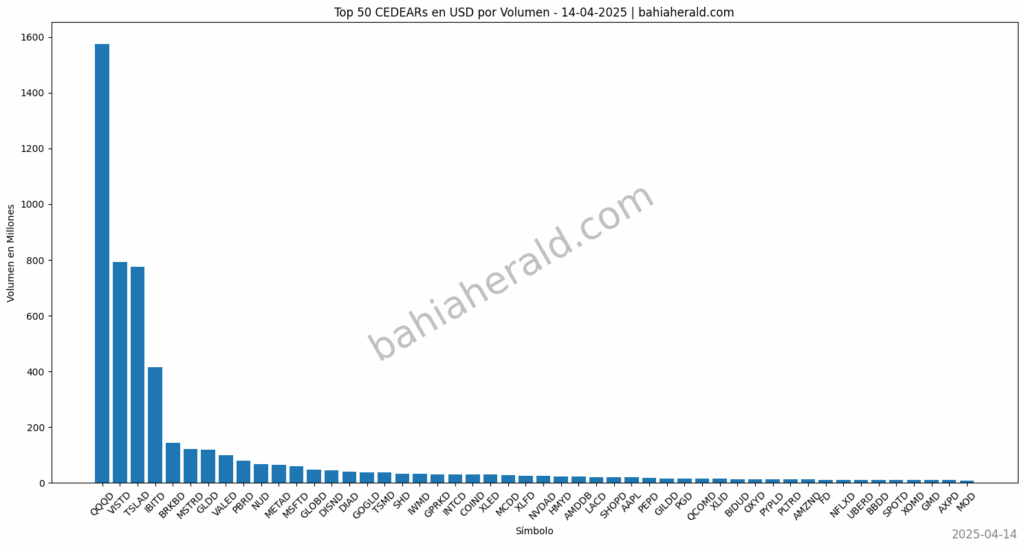 Top 50 CEDEARs con Mayor Volumen operado del 14-04-2025 en el Merval